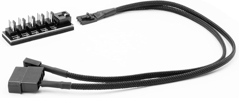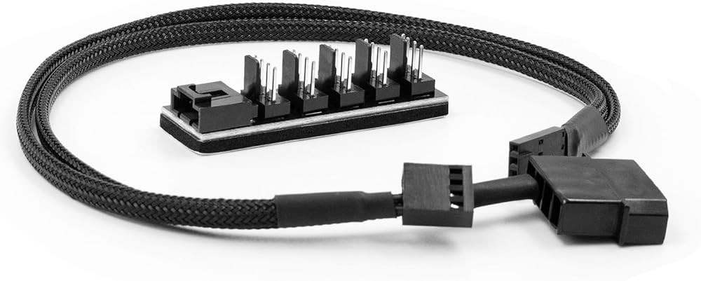1 to 5 way splitter pc case fan hub 4-pin PWM fan power supply extension cable cord, 13.7 inch Black Braided Nylon Cable, better power supply for PC computer case internal motherboard fans.