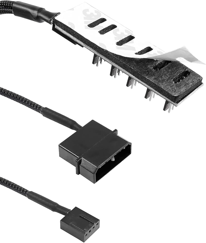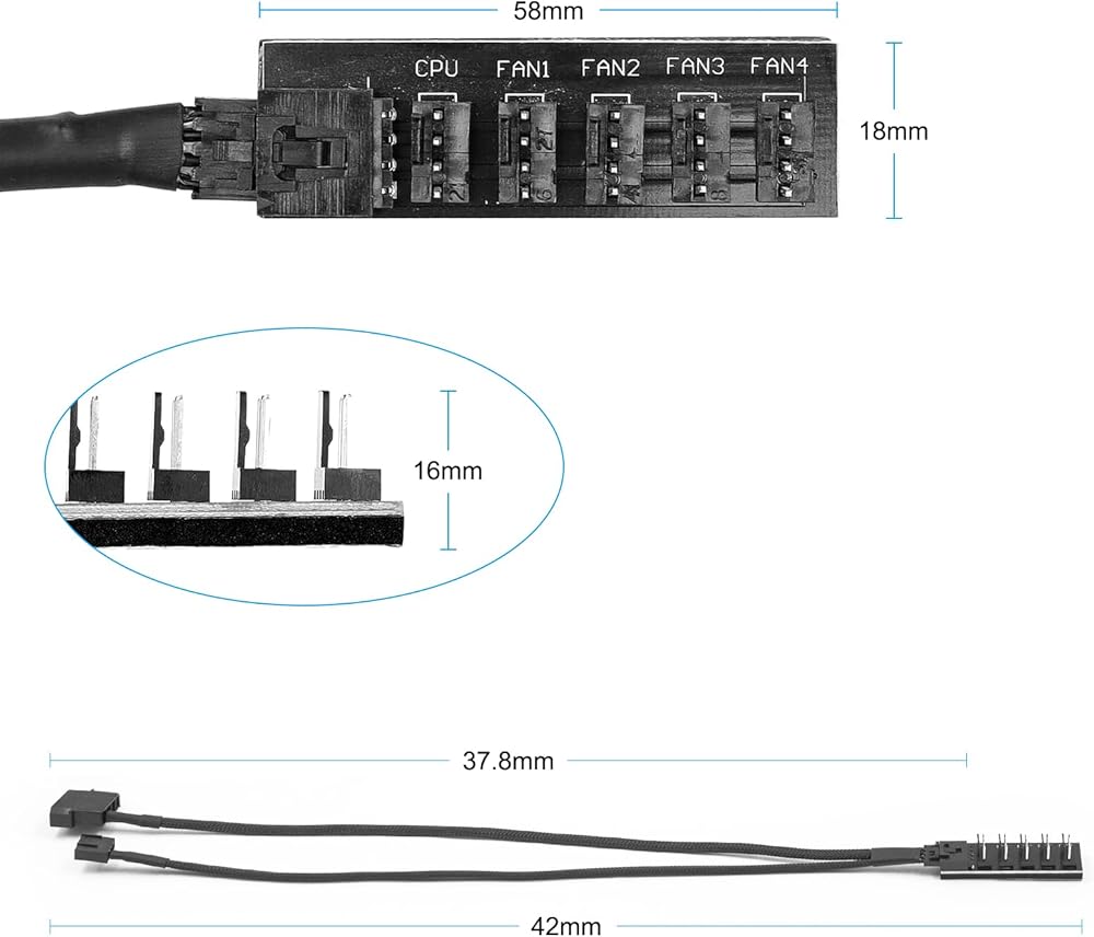The cable is one 4-pin female connector to 4-pin male connector, Support 4-pin and 3-pin fans cable, the 1 to 5 splitter 5 way hub fan power extension cable compatible with 4-pin and 3-pin PC case motherboard fans.