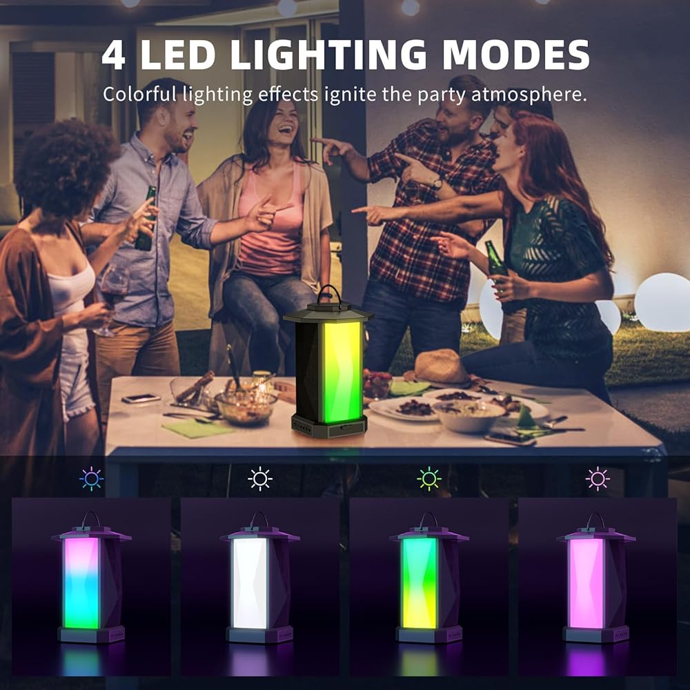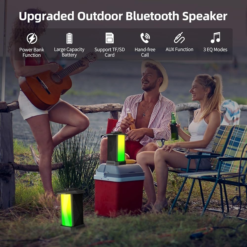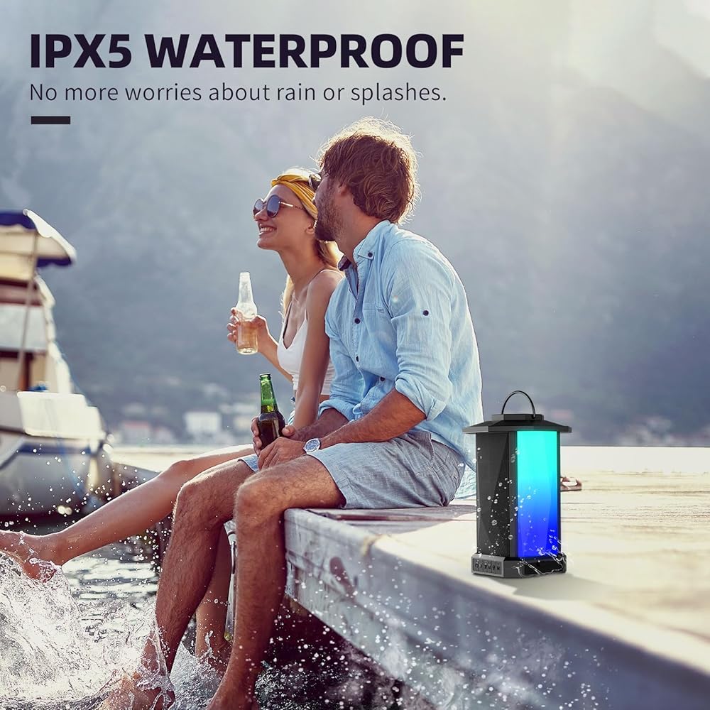 LED Colorful Rhythm Light: The outdoor Bluetooth wireless speaker can instantly transform into a decorative garden light speaker. Using colorful 16 million color LDE lamp beads, it can show different light and shadow effects following the rhythm of the music. Specially designed with 4 adjustable LED light modes - rainbow light show, pulsation, phase, and white light, perfect for outdoor gatherings, pool parties, garden potlucks, backyard barbecues, and more.