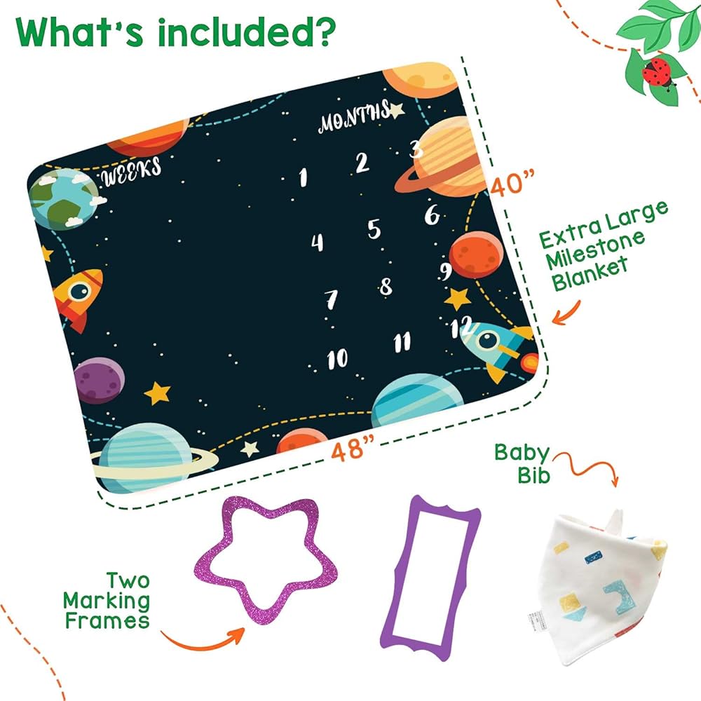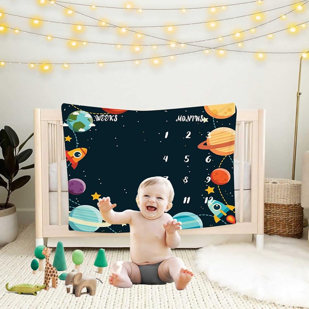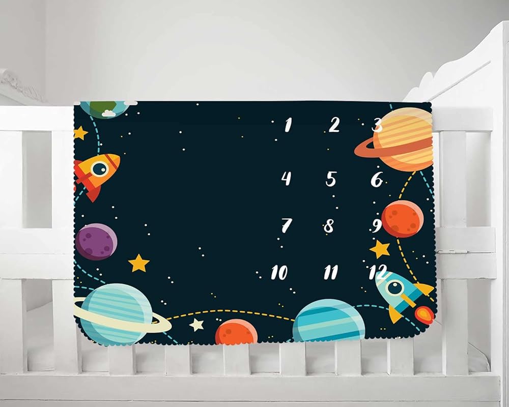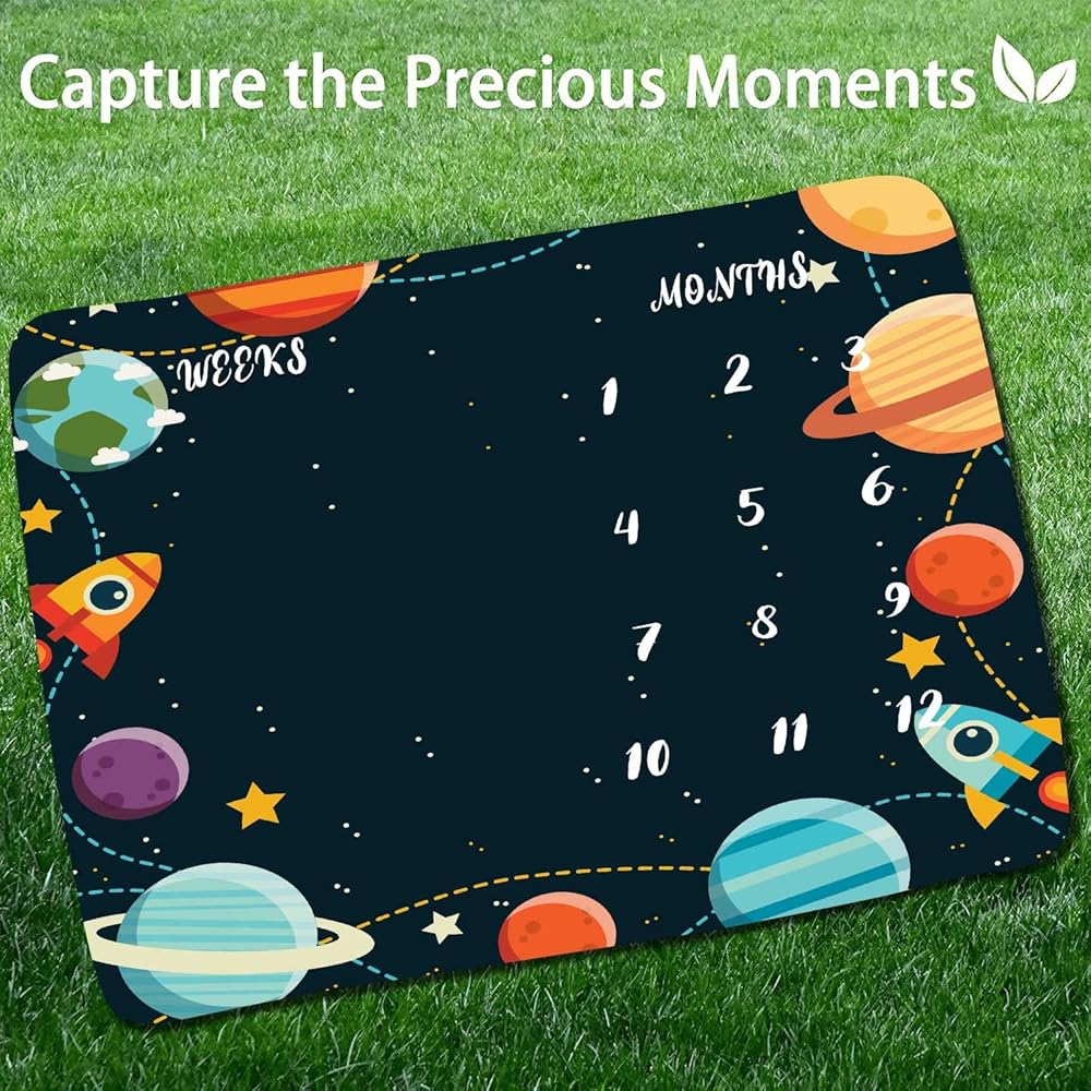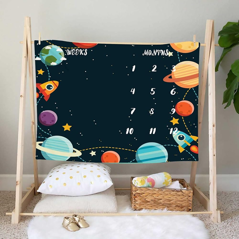 Cosmic Planets Outer Space Theme Baby Monthly Milestones Blanket Boys Kids Photo Background Mom Gifts Newborn Shower Party Decoration Personalized Growth Chart Flag Blanket 48x40inch BTDWKI042