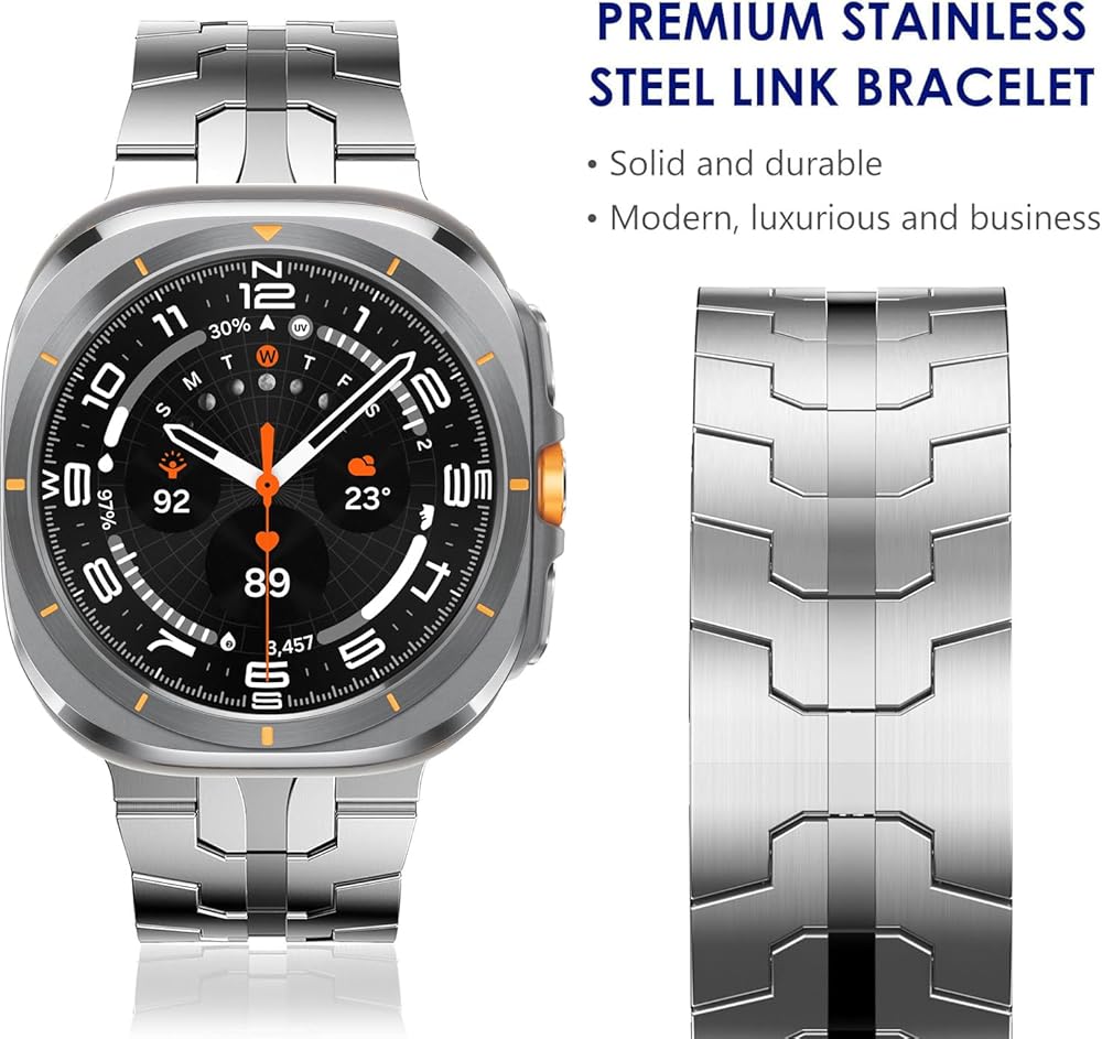 The No Gap Band is specifically Compatible with the Samsung Galaxy Watch Ultra 47mm (2024)1. It features a sleek Milanese loop design and ensures a secure fit for your smartwatch. Before purchasing, make sure to verify that your smartwatch model matches the compatibility. Keep in mind that this listing is for the band only.