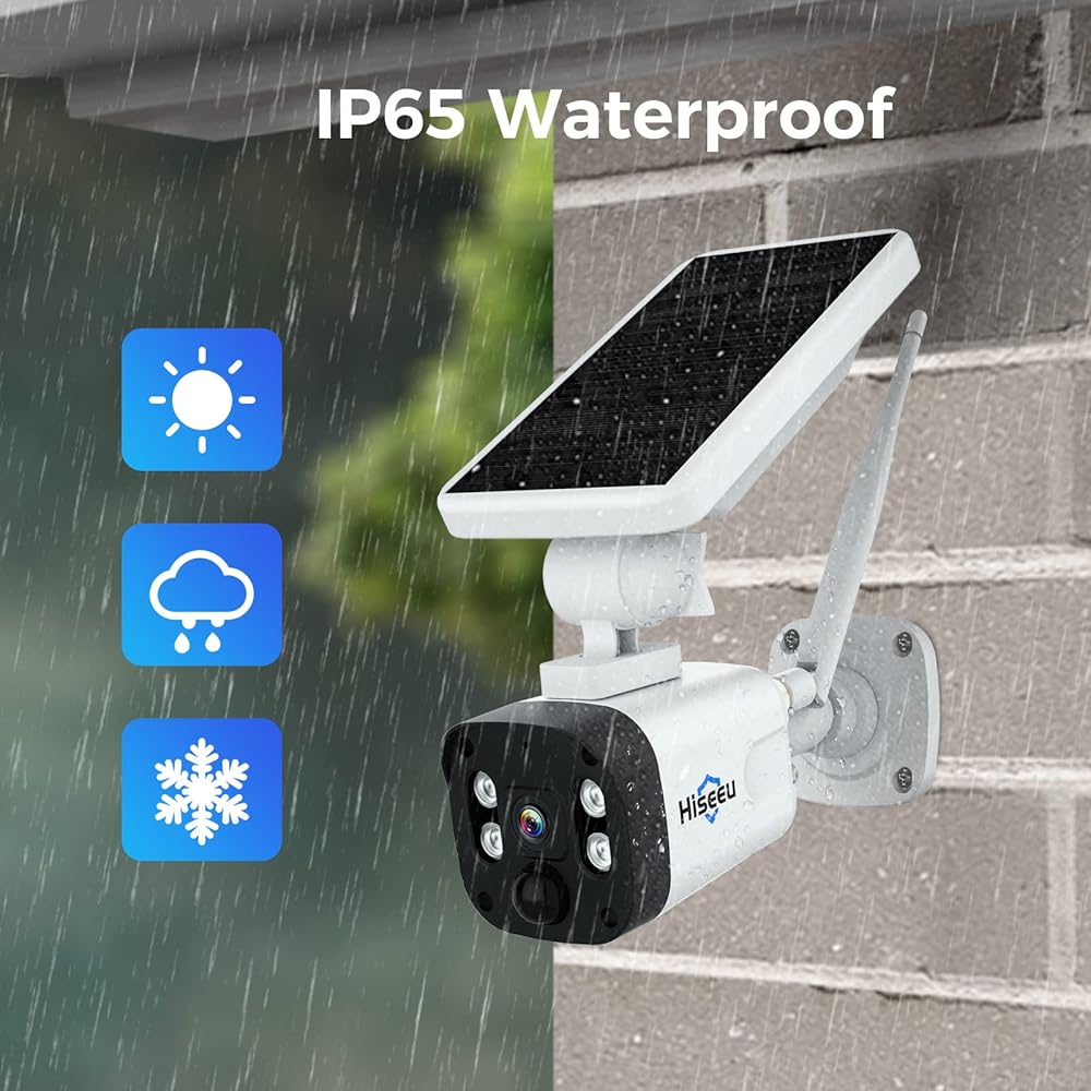 Hiseeu Wireless Security Camera Outdoor, 4MP Solar Camera, Wire-Free, Battery Powered Home Camera,4CH Expandable,PIR,Spotlight, 2-Way Audio, IP66 Waterproof, 90-Day Video Storage, Work with Alexa