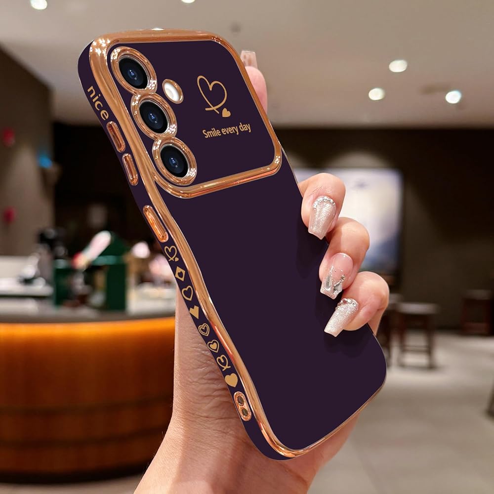 【Chic Love Heart Case】- The very modish cute Love Heart pattern on the camera lens frame, matched with the shiny gold electroplating lines and edges, perfectly decorates your mobile phone for Samsung Galaxy S24 Ultra 5G. The exquisite heart pattern on the side make your phone more distinctive.