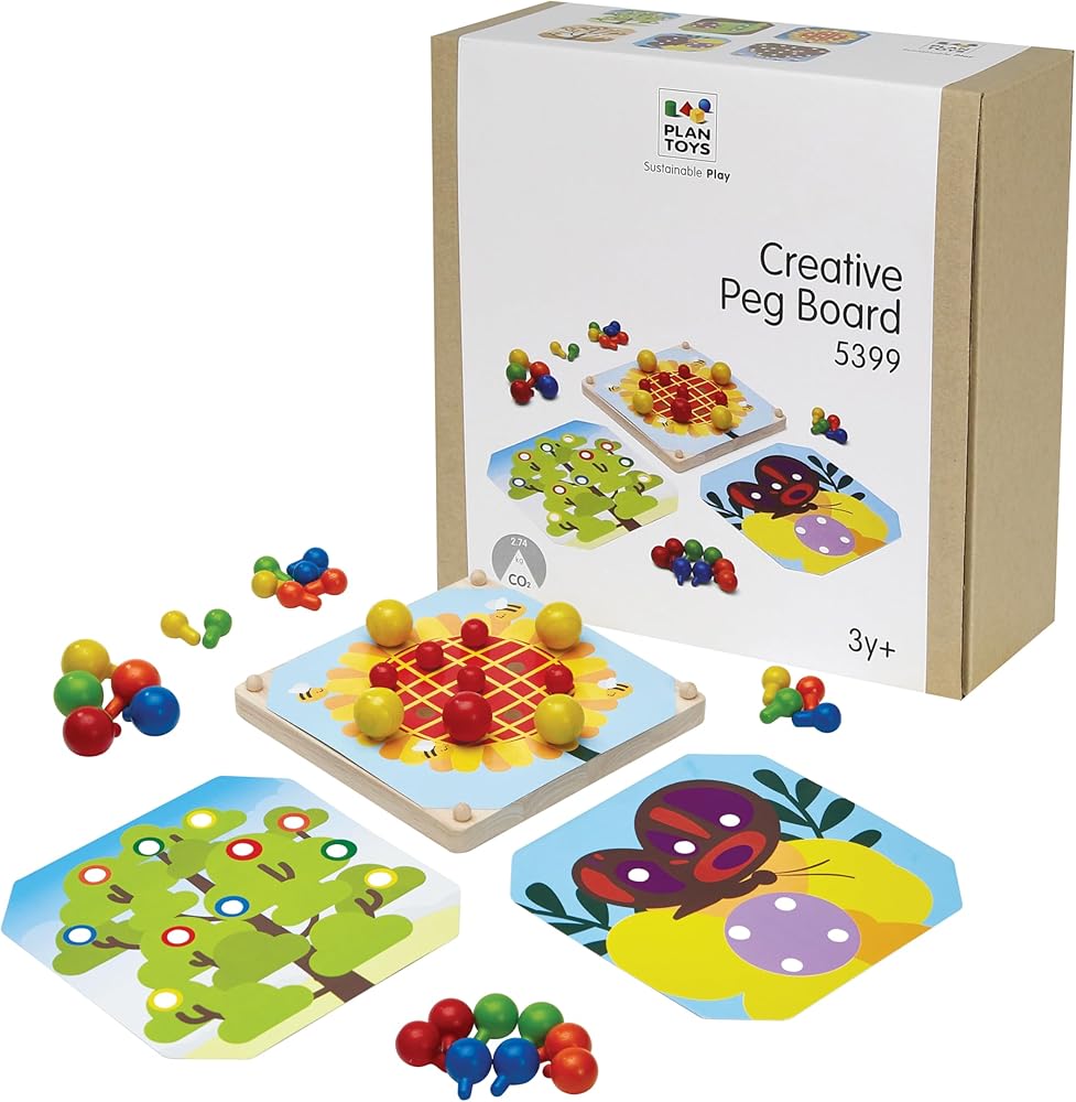 PlanToys® Creative Peg Board Wooden Toy for Kids Ages 3+ | Montessori Educational Game for Imagination, Fine Motor Skills & Coordination | Eco-Friendly Learning Set