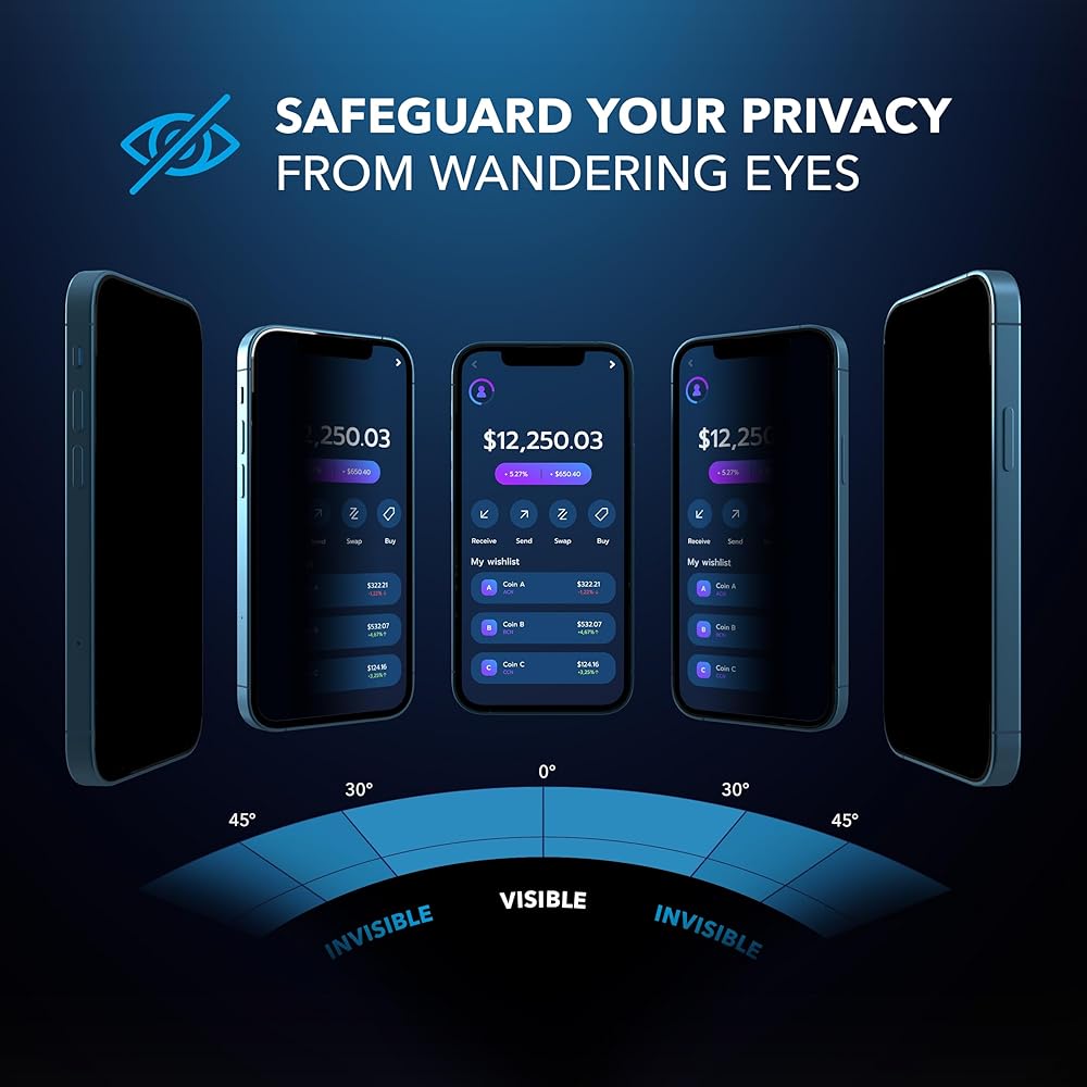 ✅KEEP YOUR SCREEN PRIVATE: The privacy screen protector is designed to prevent people from peeking at your phone screen from the side. Our screen protector limits the viewing angle, so you can hide sensitive information like passwords, credit card numbers, and private messages.