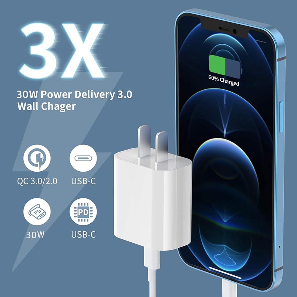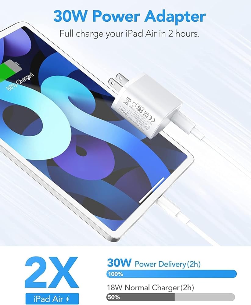 Universal Compatibility : Compatible with the new 30W Mac Book Air M1/M2/M3 retina 13 inch 2018/2019/2020/2022/2023, Mac book retina 12 inch 2015/2016/2017 and iPad Pro 12.9 inch Gen 5/4/3, iPad Pro 11 inch Gen 3/2/1, iPad Mini 6. iPhone16/16 Pro/16 Pro Max/15/15 Pro/15 Pro Max/14/14 pro/14 Pro Max/13 Pro/13 Mini. Google Pixel 7/6/5/4/3/2 etc
