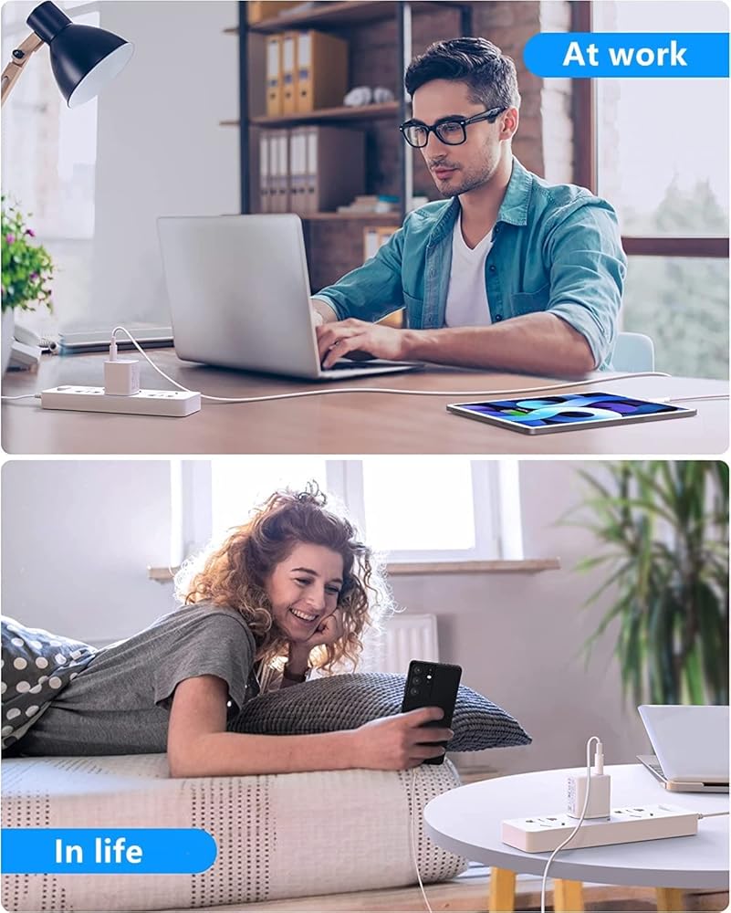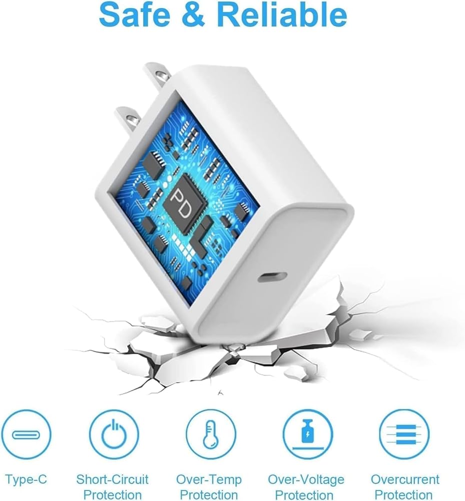 Superior Safety : Type C fast Charging block built in intelligent IC chip, automatic recognition of charging devices, equipped with multiple safety protection systems to prevent overcharging and overheating, ensuring peace of mind while charging