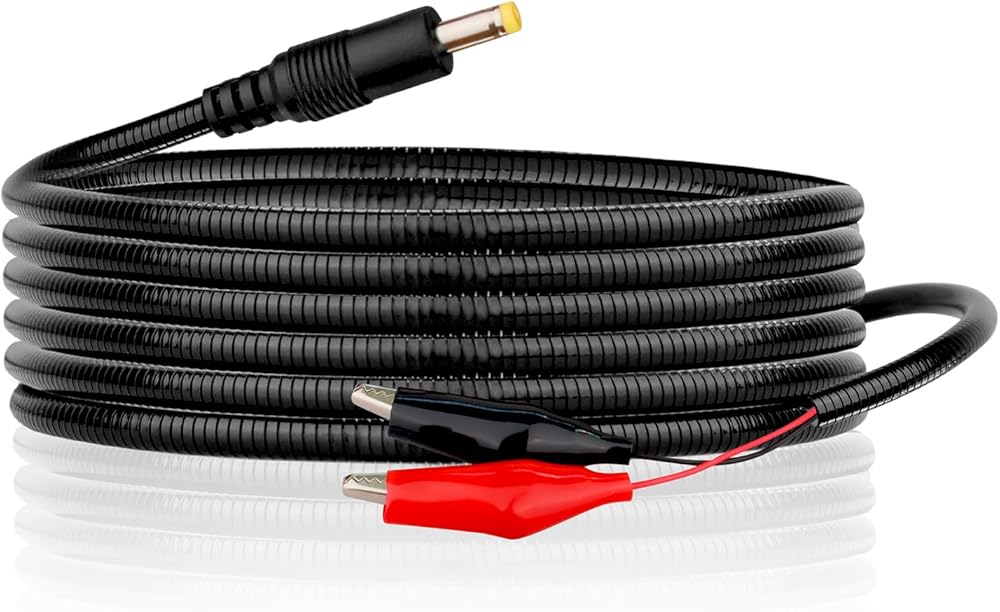 KSK 98-inch (4.0x1.7mm) Chew Proof Trail Camera Power Cord,with Alligator Clips