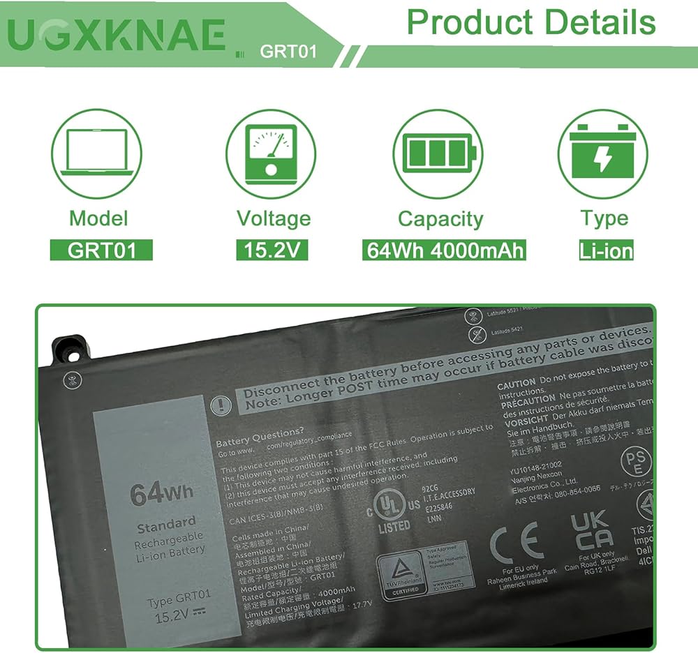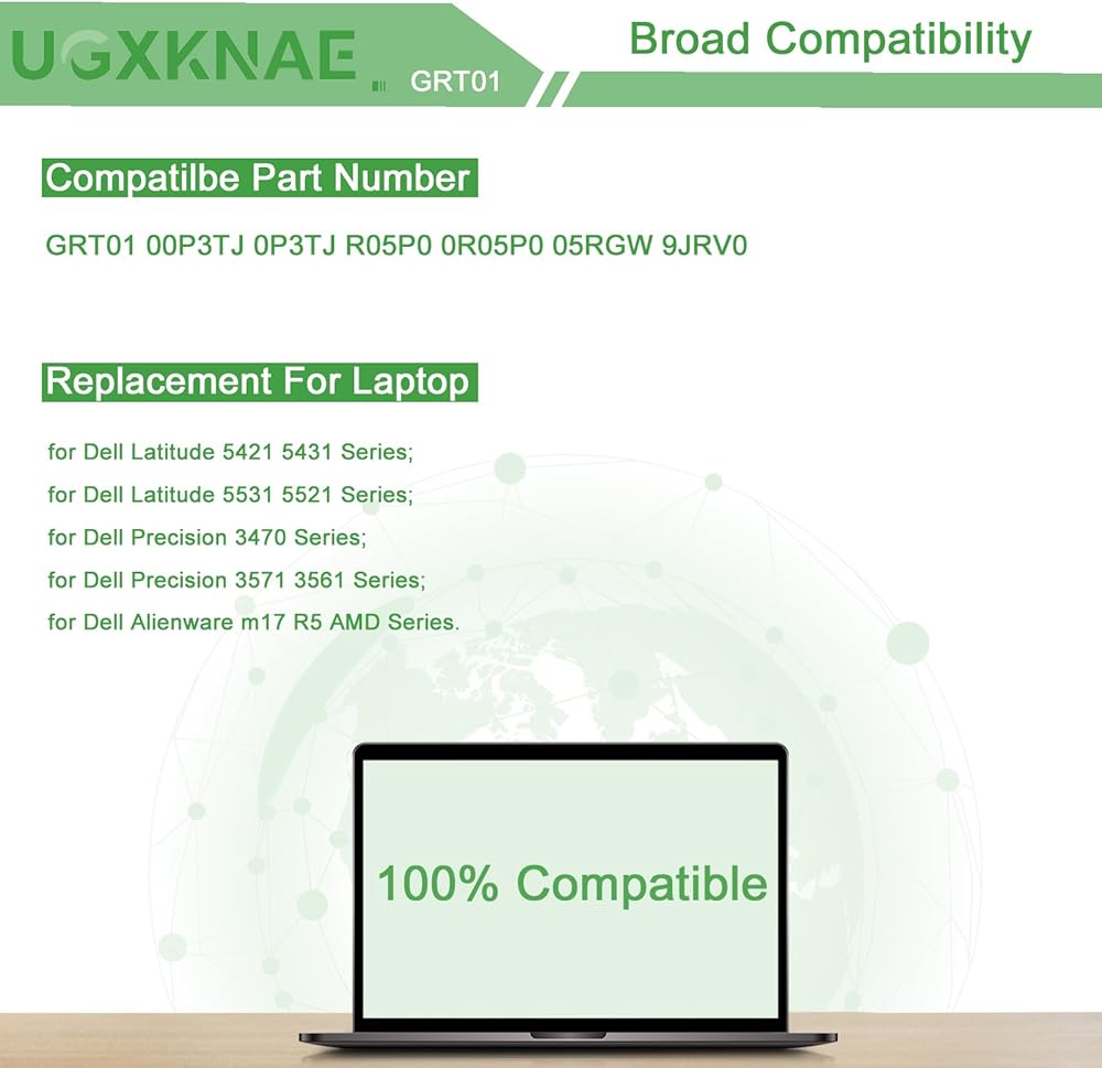 Compatible Laptop Models: Replacement for Dell Precision 3470 Series; for Dell Precision 3571 3561 Series; for Dell Latitude 5421 5431 Series; for Dell Latitude 5531 5521 Series; for Dell Alienware m17 R5 AMD Series
