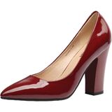 Women's Chunky Heel Closed Pointed Toe Patent Leather Dress Pumps Shoes