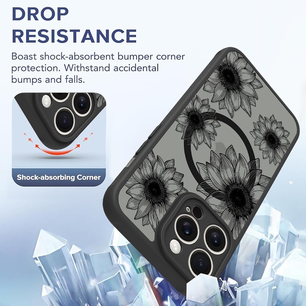 Compatible with Magnetic Accessories:The cute sunflower case compatible with Magsafe accessories such as wireless charger, wallet, car mount, kickstand, ring holder, etc. Wireless charging is faster and more stable