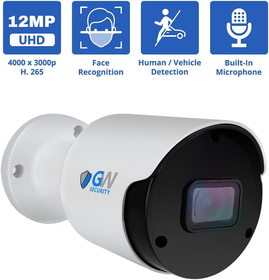 GW Security 32 Channel NVR UltraHD 12MP 4K @30FPS Face/Human/Vehicle Detection PoE Security Camera System with 16 x 6K 12MP Microphone Smart AI Waterproof Bullet Camera, Starlight Color Night Vision