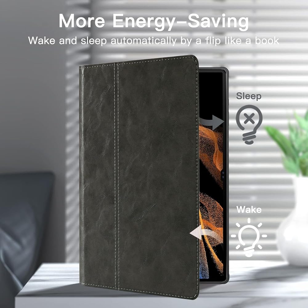 Genuine Leather case for Samsung made of dermal material, the microfiber interior, plus 3 mm thick,high quality soft TPU inner shell, not only ensures that iPad does not get scratched, but also ensures that iPad would be safe in the accidents (such as falling, collision and other external injuries). Adjustable kickstand helps iPad stand smoothly that allows you to free hands and enjoys the fun of movies. Wherever you use Ggexmil iPad case, in an office, in a coffee shop, out, at home, even in a kitchen, toilet, etc., it will be satisfying.