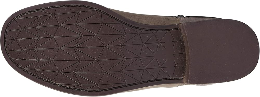 Molded rubber outsole for traction on a variety of surfaces is combined with a fashionable welted decorative stitch. Non-marking.