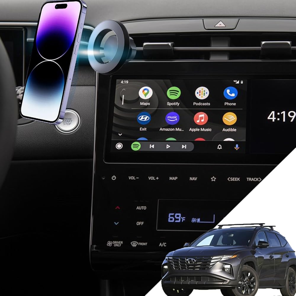 【Designed for Magsafe】Hyundai Tucson phone mount is one of the best accessories and the most fashionable iphone car mount. It designed for iphone 12/13/14/15 All series or other magnetic phone cases. NOTICE: The included metal ring (won't interfere with wireless charging) is necessary if it work with other phone models or non-MagSafe cases.
