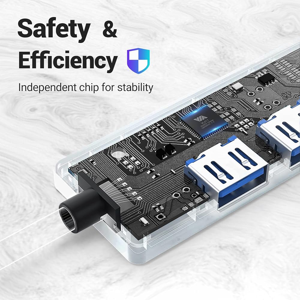 【Speedy Data Transmission】 The 4-port USB 3.0 hub excels at high-speed data transmission, achieving rates of up to 5Gbps. This speed is a remarkable 10 times faster than USB 2.0, allowing you to transfer an HD movie within seconds. It also offers backward compatibility with USB 2.0 and 1.1.