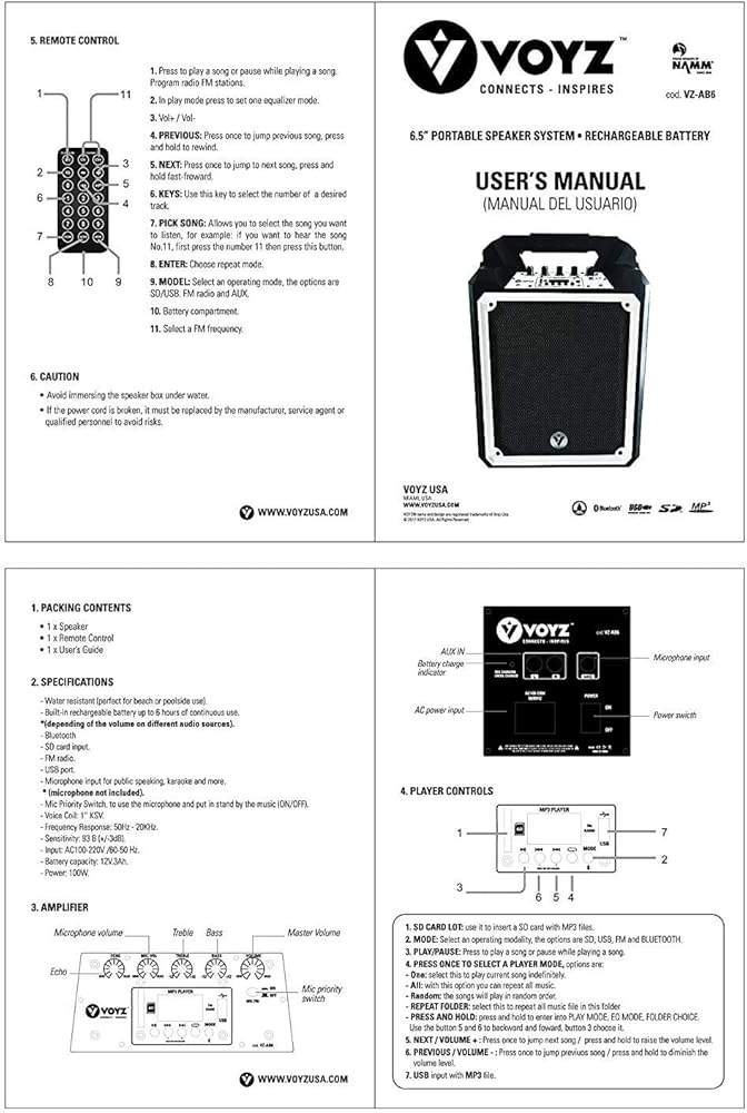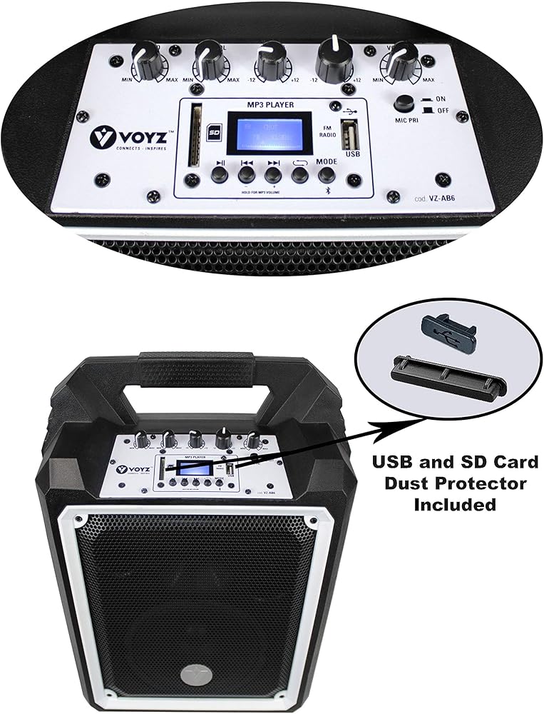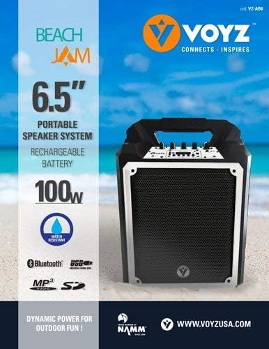 VOYZ 100W Portable Bluetooth Speaker - Waterproof Speaker Deep Bass, Rechargeable Battery, USB/MP3/SD/FM - Ideal for Indoor and Outdoor Entertainment. Microphone Included