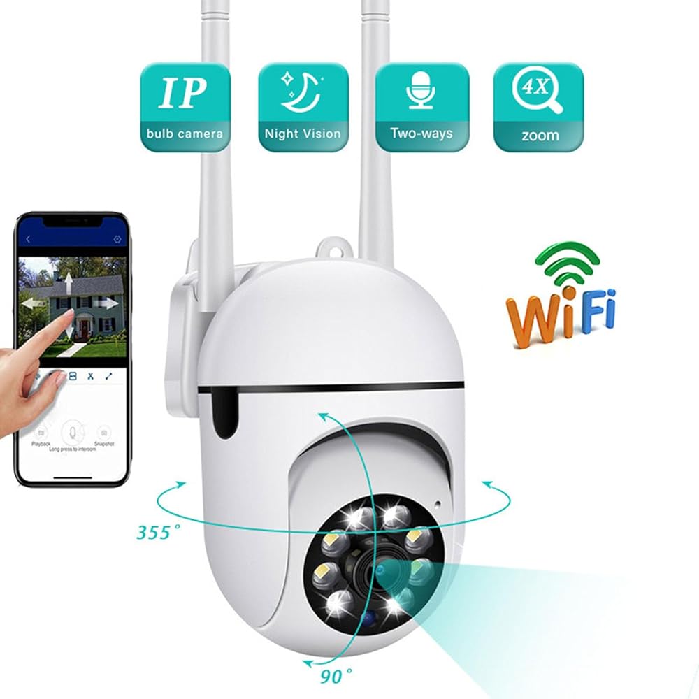 Outdoor Security Cameras, Home Security Camera with Night Vision, Intelligent Motion Detection, 2 Way Audio, Supports SD Card and Cloud Storage (US Plug)