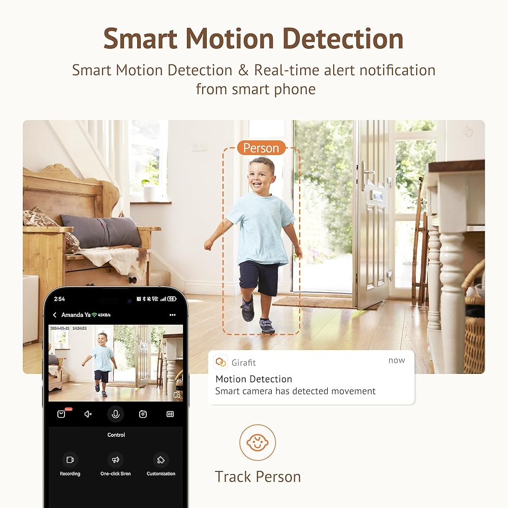 【24/7 Motion Alerts & Smart Siren】Stay vigilant with instant alerts for baby's movements, pet activities, or unexpected intruders. The smart siren deters threats, keeping you and your loved ones safe.