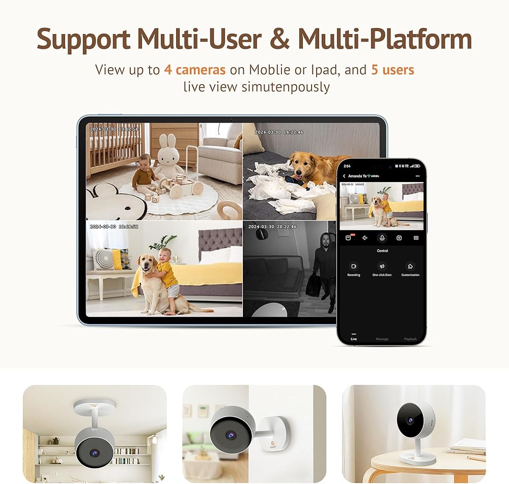 3MP 2K Indoor Camera 5GHz & 2.4GHz, Indoor Home Security Cameras 4 Pack for Baby/Elder/Dog/Pet Camera with Phone app, Motion Detection, 2-Way Talk, US Cloud & SD Card Storage