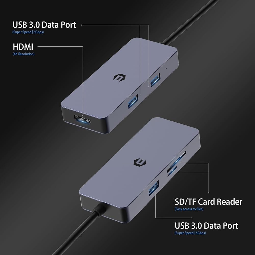 Versatile connectivity: This USB C hub adapter features 1x HDMI 4K port, 3x USB 3.0 ports, 1x USB C port, and 1x microSD card reader, providing a wide range of connectivity options for your devices