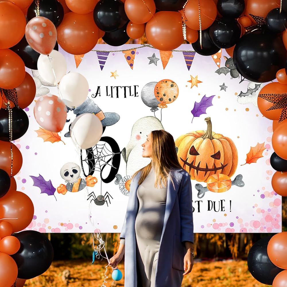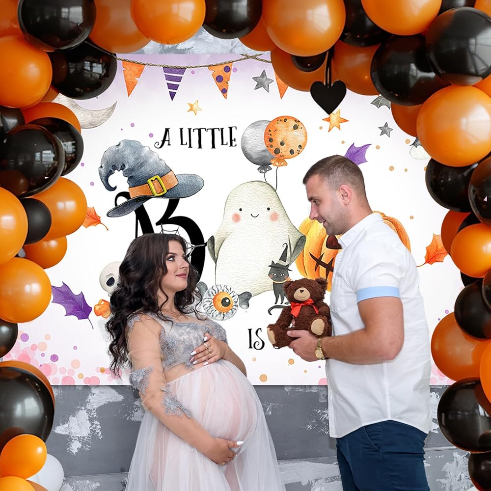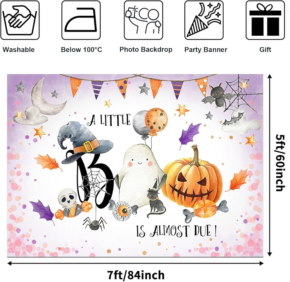 Avezano Halloween Baby Shower Backdrop Neutral Halloween Pumpkin Baby Shower Decorations Photo Backdrops A Little Boo is Almost Due New Born Party Photoshoot Backdrops (7x5ft)