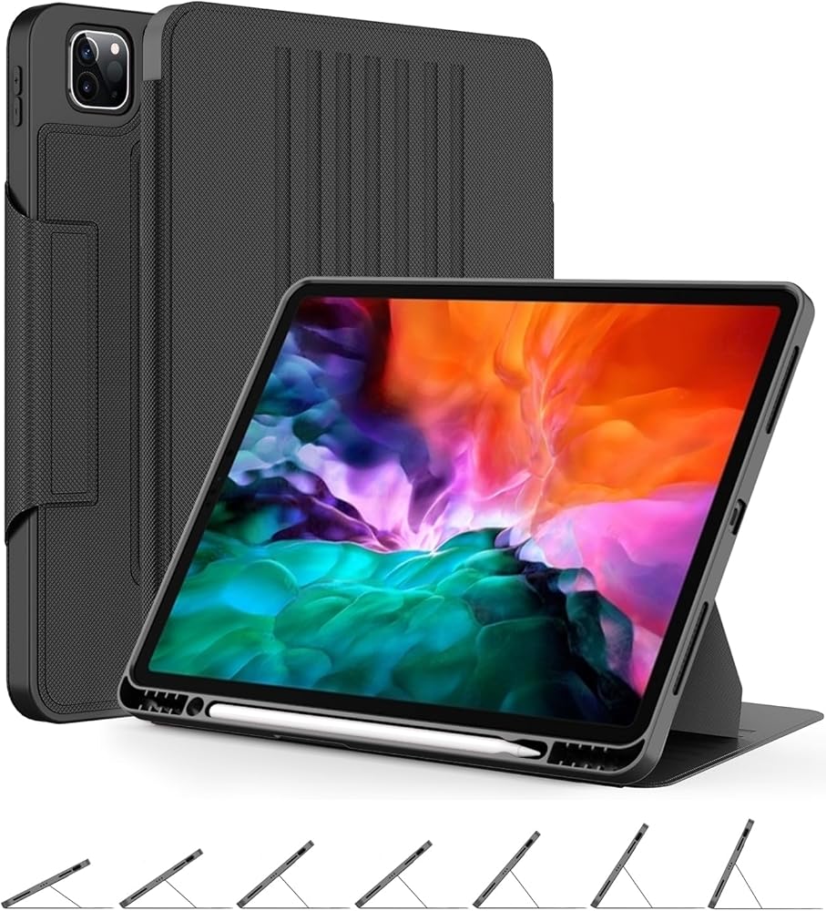 OCYCLONE Compatible with iPad Pro 12.9 Case 2021 2020 2018, 7 Viewing Angles Magnetic Stand with Pencil Holder Protective Case for iPad Pro 12.9 inch 5th 4th 3rd Gen, Black