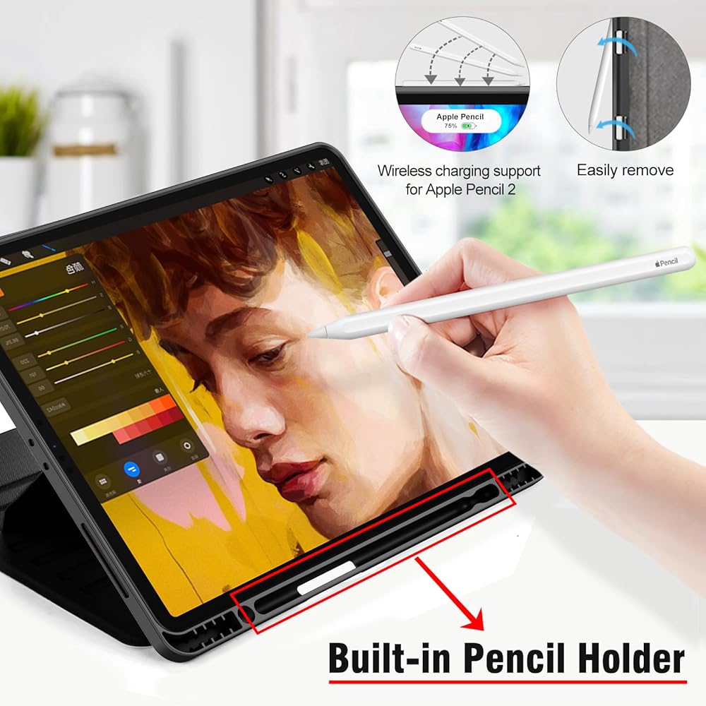 [Pencil Holder / Precise Cutouts]: Built in Pencil Holder Support 2nd Gen Pencil 's Magnetic Attachment and Wireless Charging, which will make you more easier to place your pen at the right position. (Pencil not included). Precise cutouts and tactile buttons ensure quick access to all Features, the case very easy to install and remove