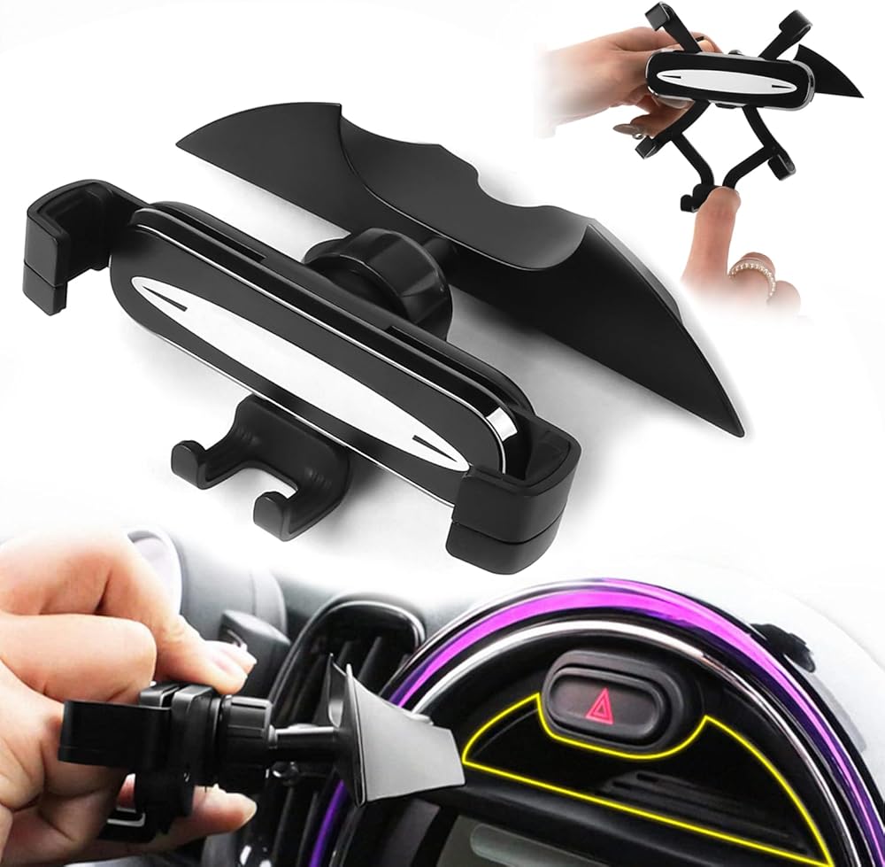 🚗Easy to install, the product comes with double-sided tape. Installed directly in the groove above the navigation screen The flexible and adjustable sub-handle can fix your mobile phone in the direction of gravity, suitable for mobile phones up to 85 mm wide. The black design perfectly blends with the British tradition of the car.