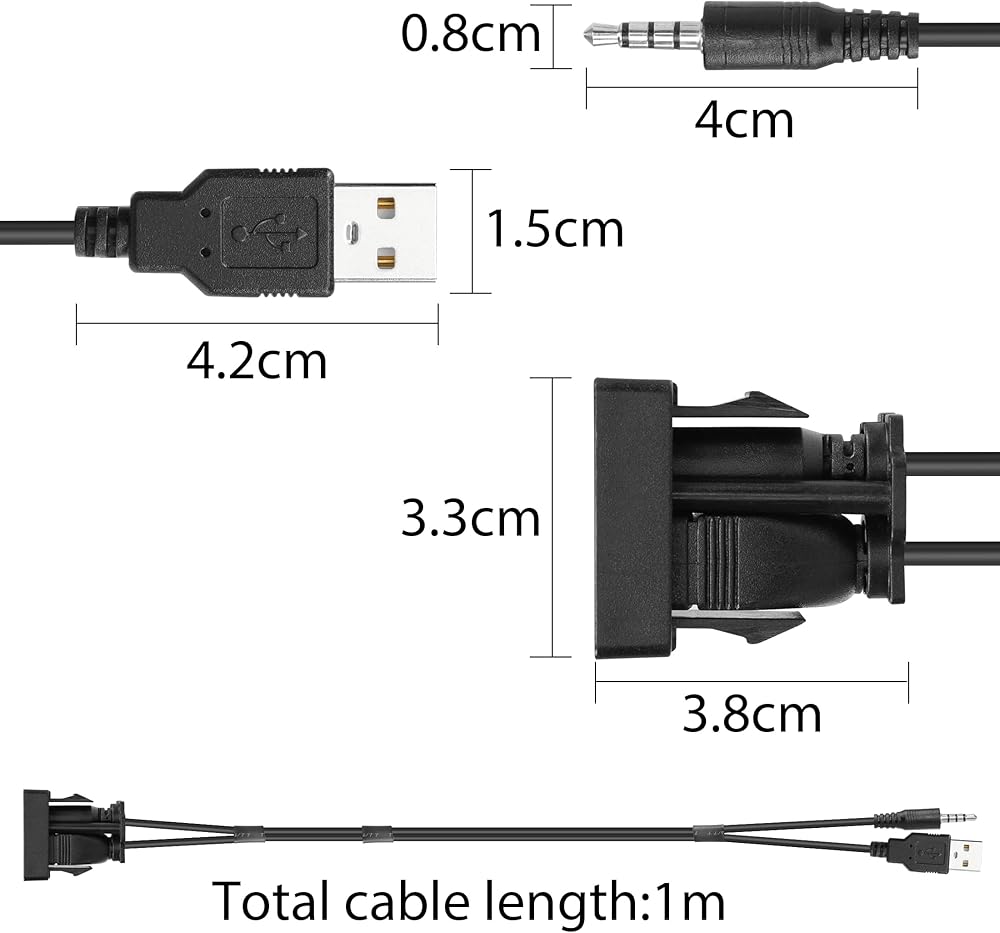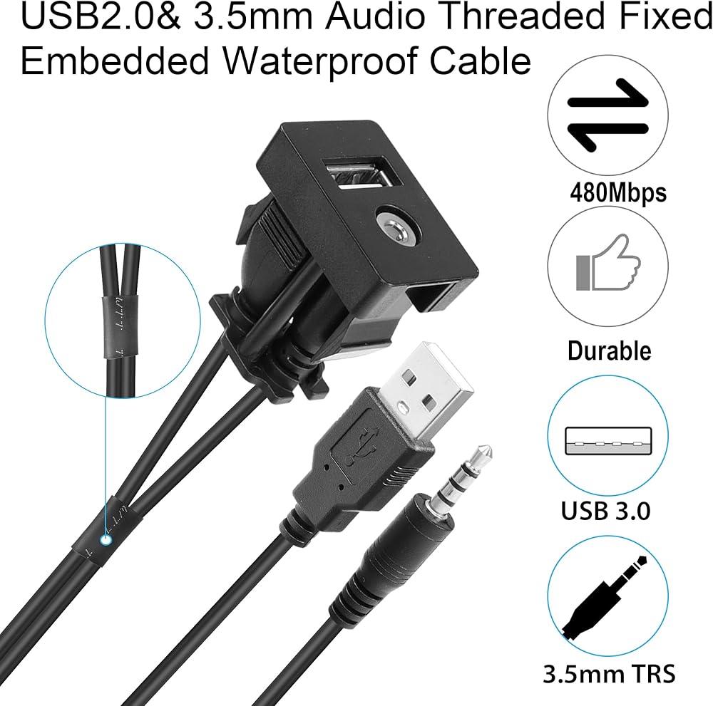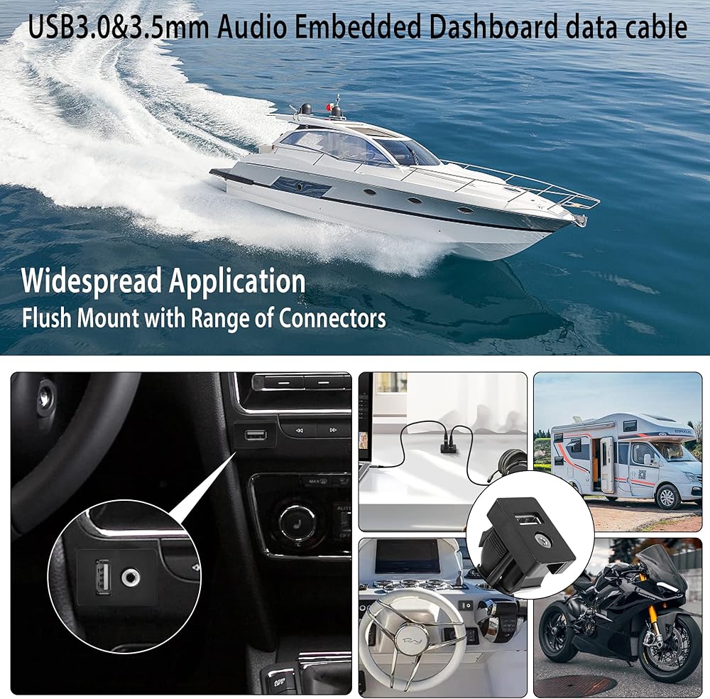 [Wide Application] The USB and 3.5mm AUX extension bracket is specifically designed for cars, boats, motorbikes and trailers. It is compatible with any stereo device with USB and 3.5mm stereo audio inputs. It can also be used for DIY installation in your den, bedroom and desktop.