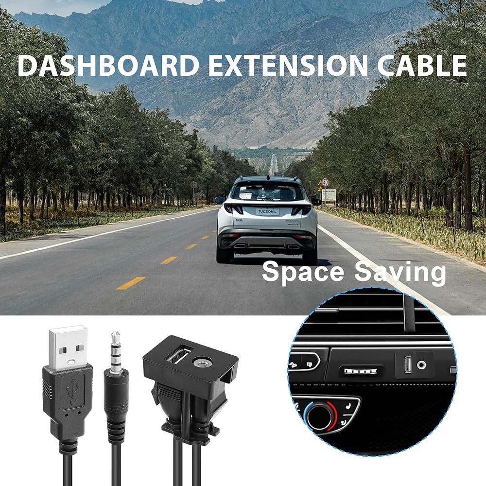 [Easy to Install] The 3.5mm Aux extension cable snaps into place and requires no brackets or screws. Use the existing hole or cut a hole in your dashboard and clip onto the socket to mount it flush to your vehicle's dashboard. Easy installation in minutes.