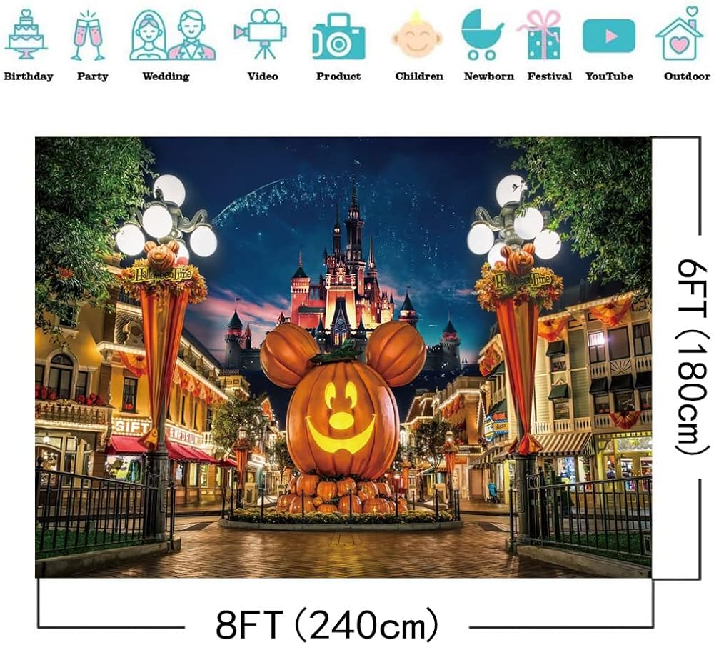8X6FT Halloween Pumpkin Backdrop Night Street Backdrop Travel Happy Halloween Party Vinyl Banner Birthday Party Decoration Background DH-122