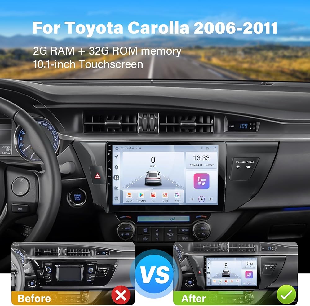 【Car Radio for Toyota Coralla】This is an Android touchscreen car stereo for Toyota Corolla with a form factor that matches the factory dashboard, which is more beautiful and gives your car a new look. 2G RAM + 32G ROM memory and a large 10.1-inch touchscreen ensure smooth operation while you're driving, and the machine responds quickly.