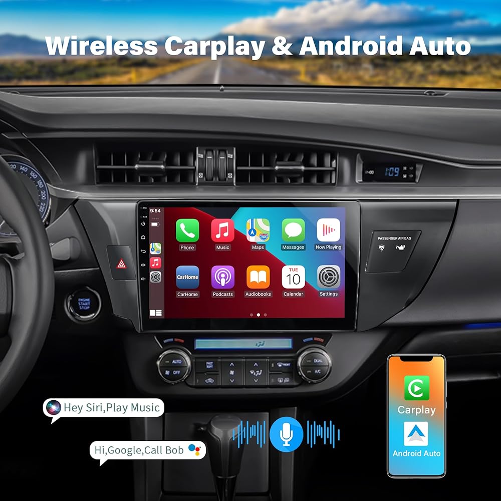 【Wireless Apple CarPlay & Android Auto】This Toyota Corolla radio screen supports wireless Apple CarPlay, Android Auto and Mirror Link, which can connect your car stereo to your mobile phone via Bluetooth and WiFi without the need for data cables, making the operation simple and convenient. Say goodbye to all kinds of data cables in the car, and return the simple space in the car.