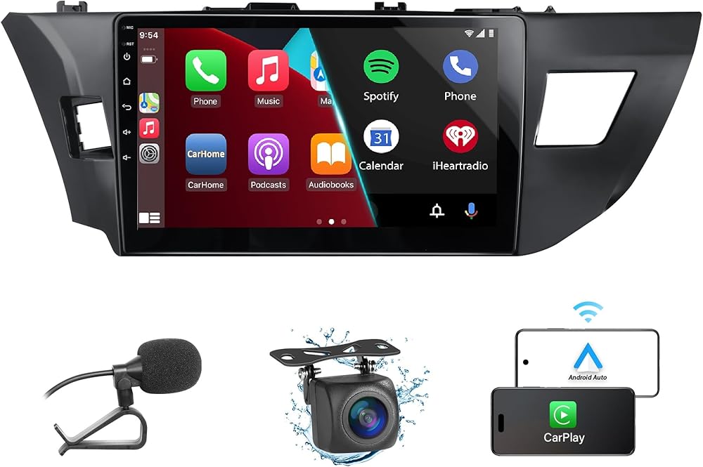 Car Stereo for Toyota Corolla 2GB+32GB 2014-2017 Wireless Carplay and Android Auto 4G+WiFi GPS Navigation 10.1 Inch Touchscreen Head Unit with HD Backup Camera/Bluetooth/Miror Link/MIC/RDS/FM/SWC