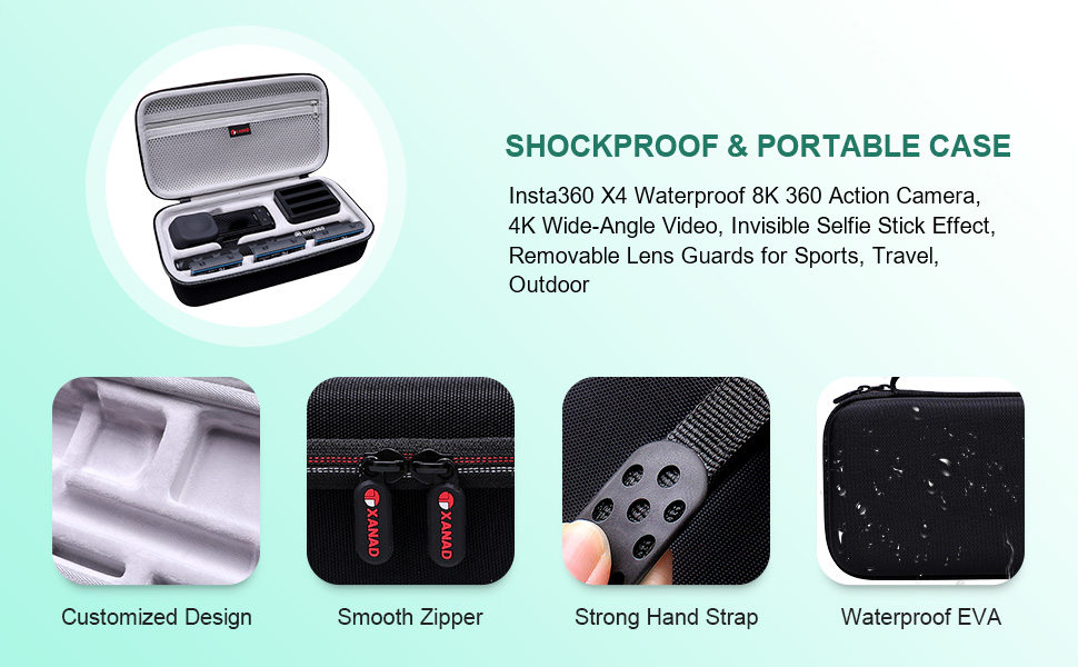 Sturdy and Strong Case : The interior is made of Great Velvet and the exterior is made of high quality EVA material, which can protect your Insta360 X4/X3/X2 Camera from shockproof, semi-waterproof, dustproof and wear-resistant