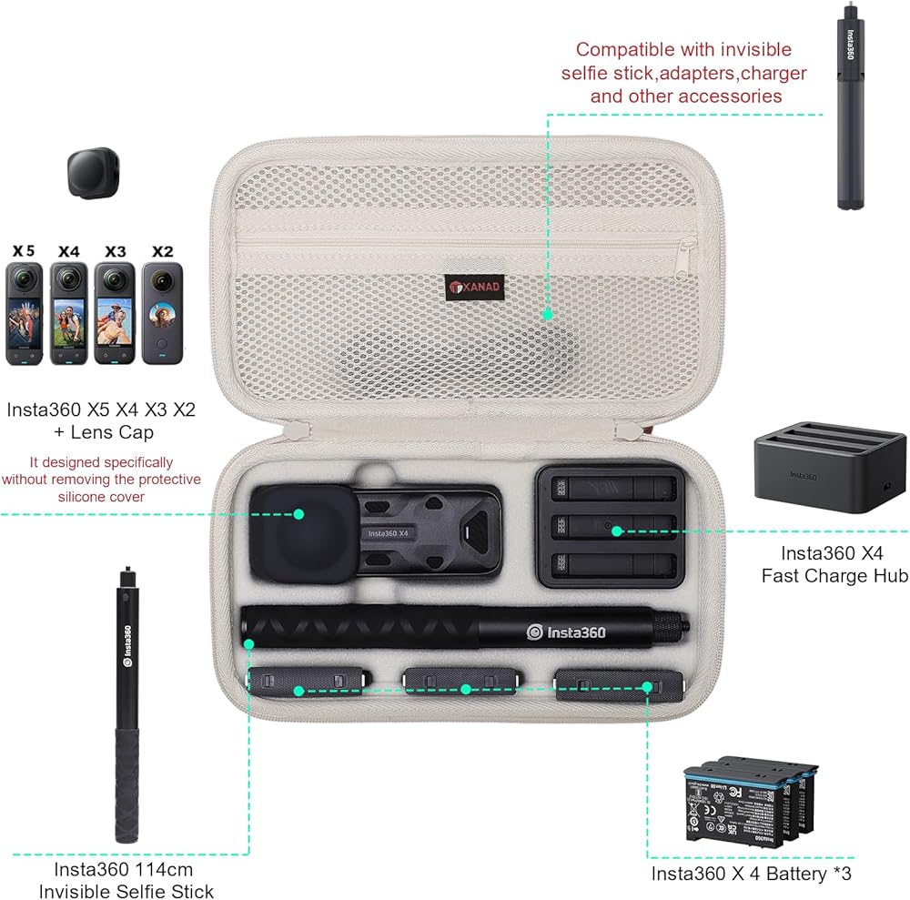 Perfect Fit : The case is tailored for Insta360 X4/X3/X2 Camera . External Dimension :5 x 4.2 x 3.4 inches , weight : 156.4 g / 0.3 lbs