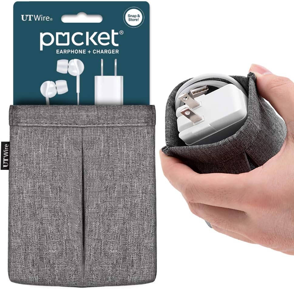 When you're on the go, a bag of tangled cables and other accessories is the last thing you want. Avoid that nightmare with the Pocket for Earphone + Charger! Featuring a snap spring closure and a front zipper pocket, this travel case makes storing your earphones, earbuds, airpod, airpod pro, headphones, phone chargers, and other electronic accessories quick and easy. Simply squeeze, throw your items in, release, and you're ready to go. And, with its durable, water-resistant canvas exterior and padded interior, your items will be safe from bumps and scratches along the way.