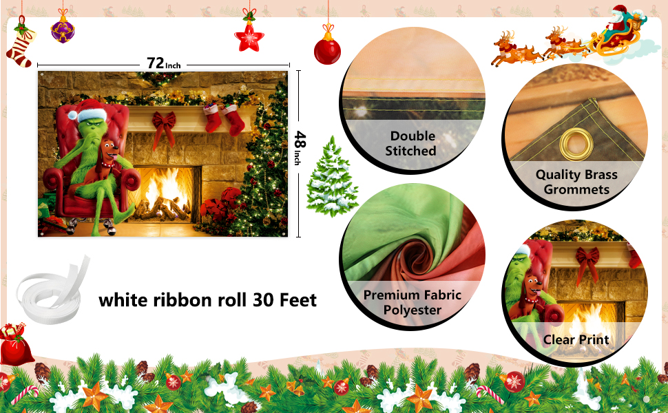 Widely Use: This christmas backdrop is a great home decor. It's perfect for christmas grinch themed party decoration. You can hang it on the wall, garden, yard, porch, fence etc to celebrate the holiday as a photo prop.