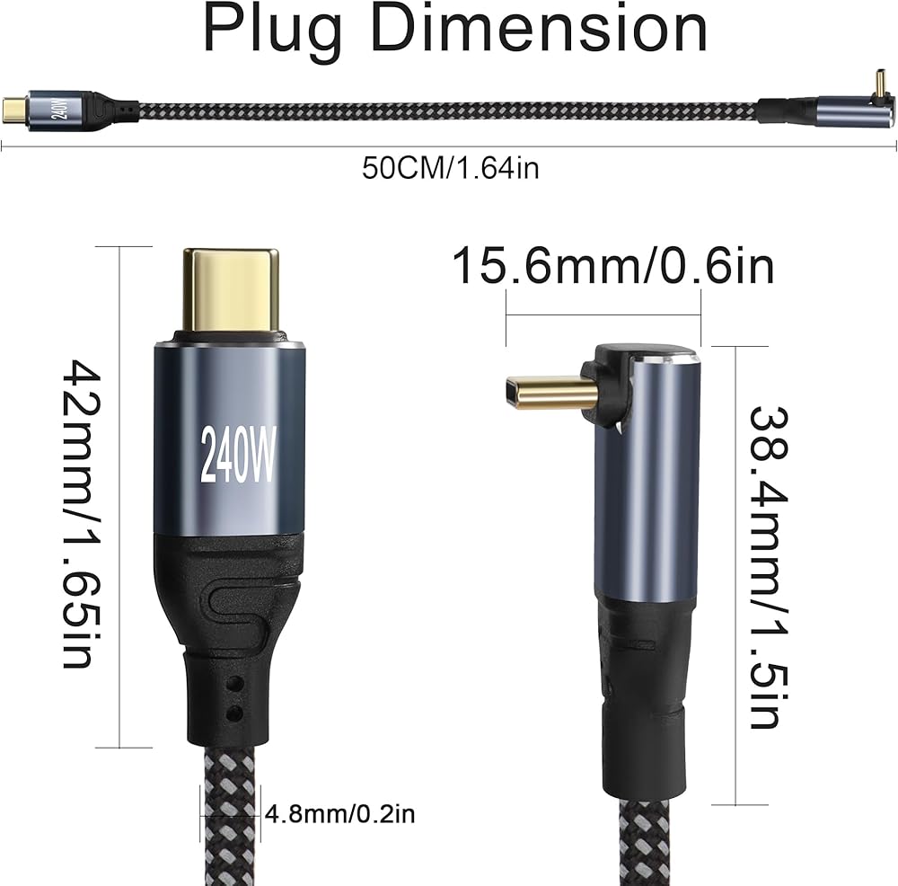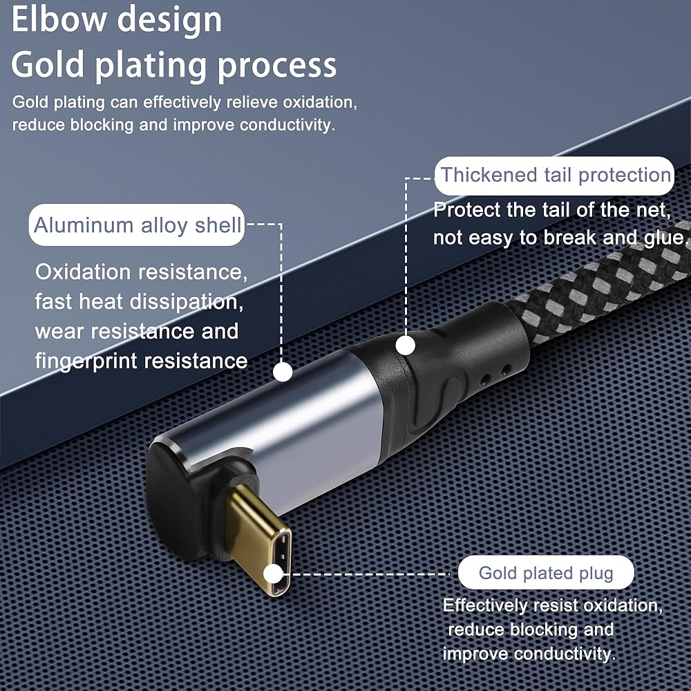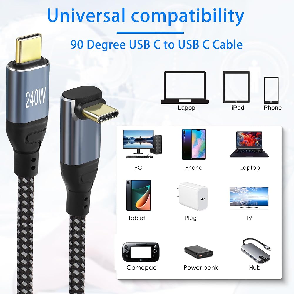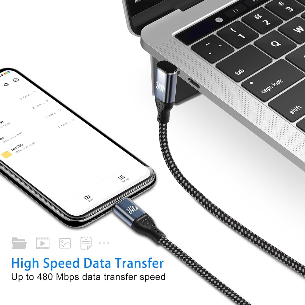 GELRHONR PD3.1 240W (48V5A) Compatible with 100w(20V5A) USB C to USB C Cable,you can charging and transfer data with this Right Angle USB-C cable.