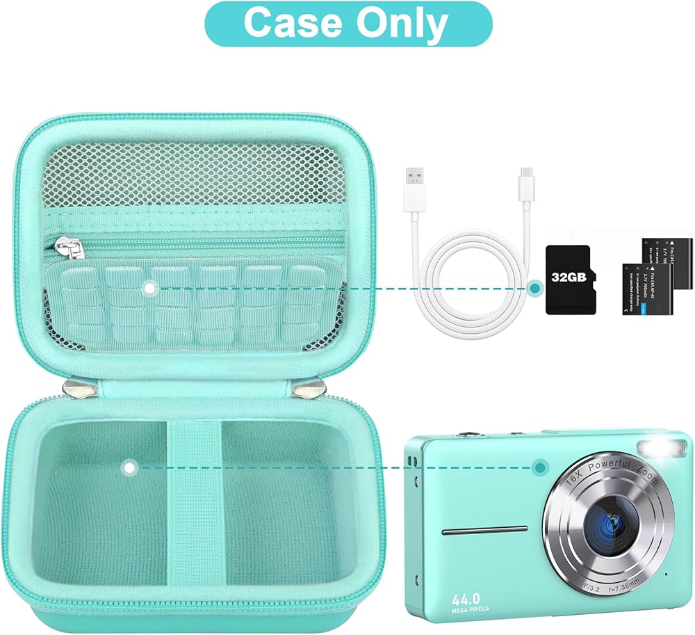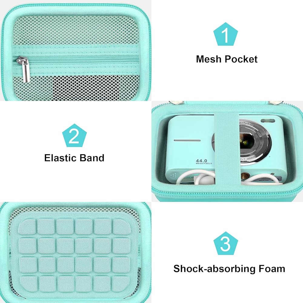 【Premium Material】For CAMKORY digital camera case made of PU material and high-quality durable EVA sturdy shell keeps your FHD 1080P kids camera protected. Double layer damping foam keeps your video photo camera and small accessories free from scratches.