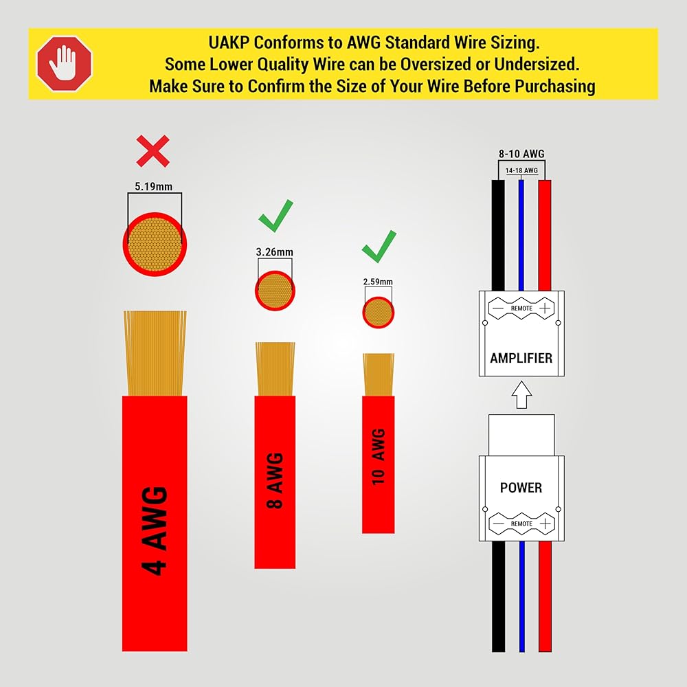 Capable of taking up to 4AWG cable. Amplifier wires are sold separately.