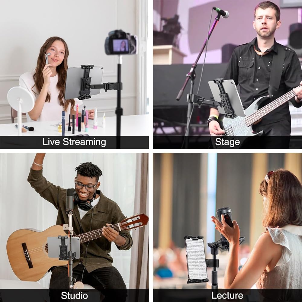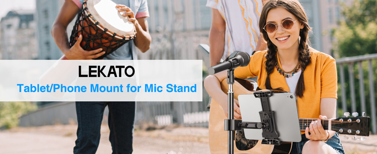 LEKATO Tablet Holder for Mic Stand, Adjustable Microphone Music Stand Phone Holder Mount, Compatible with iPad, iPhone, All 4.7-13.5 Inches Tablets & Smartphones