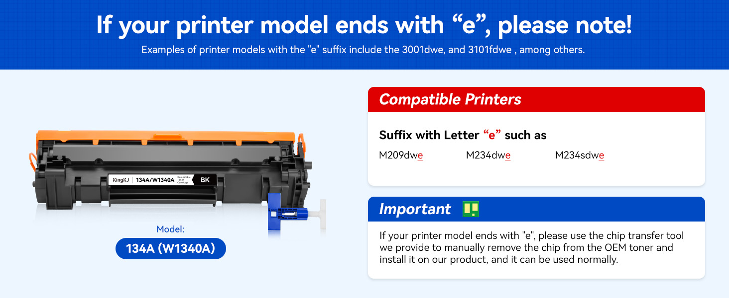 - Item Name:KingKJ Compatible for 134A 134X toner cartridges with chip