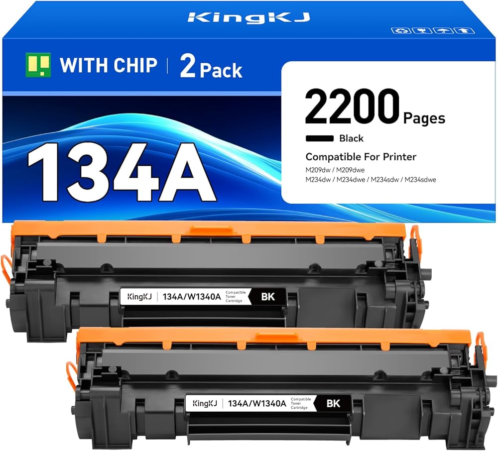 134A Toner Cartridge 2-Pack with Chip Compatible for HP134A W1340A 134X W1340X for HP Laserjet M209dw MFP M234dw M234sdn M234sdw Printer M209dwe M234dwe M234sdwe ink Laser All-In-One Copier Black M234