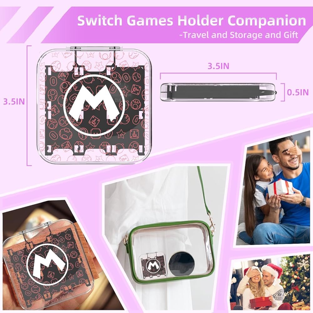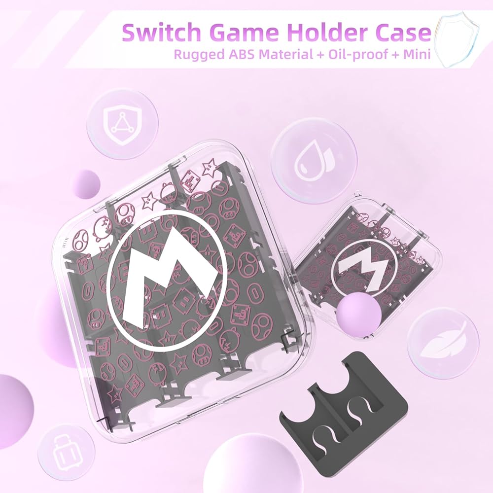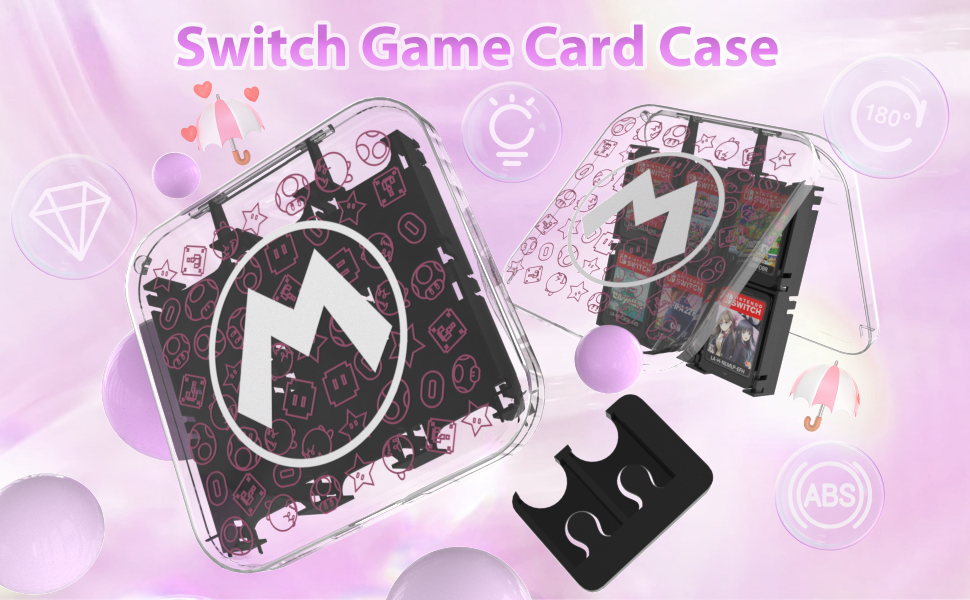 Stylish and Transparent- Adopting classic switch game pattern design and high quality abs transparent shell material, the switch cartridge case with large curved grooves is easy to put in and take out, which is the preferred accessories for switch games card.