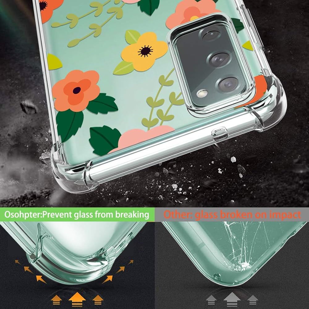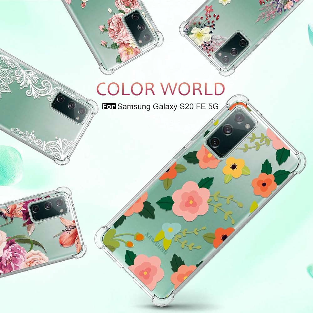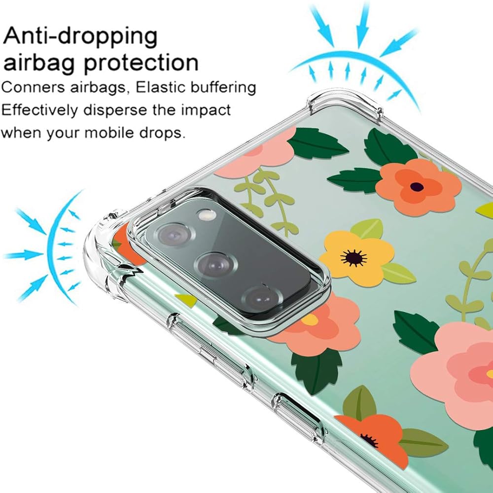Osophter for Galaxy S20 FE 5G Case Clear Transparent Reinforced Corners TPU Shock-Absorption Flexible Cell Phone Cover for Samsung Galaxy S20 FE 5G(Cartoon Flower)