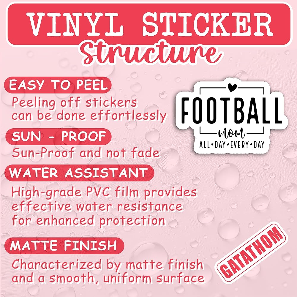 (3PCS) Football Mom Stickers – All Day Every Day Football Decals, Waterproof Vinyl Sticker for Mom, Mama, Game Day Accessories for Laptop, Tumbler, Water Bottle, Scrapbook, Phone Case, 3" x 2"