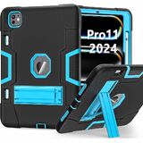 TSQQST for iPad Pro 11 Inch Case M4 5th Generation 2024, iPad Pro 11 Case with Pencil Holder+Stand, Full-Body Protective Rugged Shockproof Cover for iPad Pro 11 Inch 5th Gen, Black Blue
