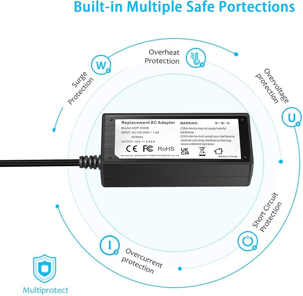 If your device's voltage is 19V DC, the current is less than 3.42A, the power port is the same size as the listed DC connector, and the inside polarity is "+", outside polarity is "-", you can choose this 19V 3.42A power supply. Otherwise, please choose other power supply according to above instructions.